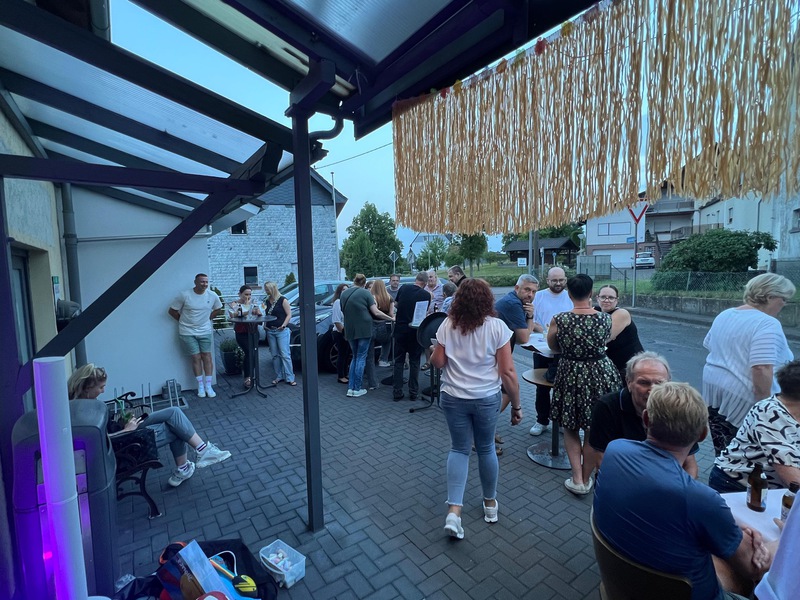 Wetter, konnten auch draußen an Tischen und Bänken tolle Gespräche geführt werden. Nicht nur Flooderscher kamen zur Veranstaltung, viele folgten auch der Einladung von Freunden und Familie und