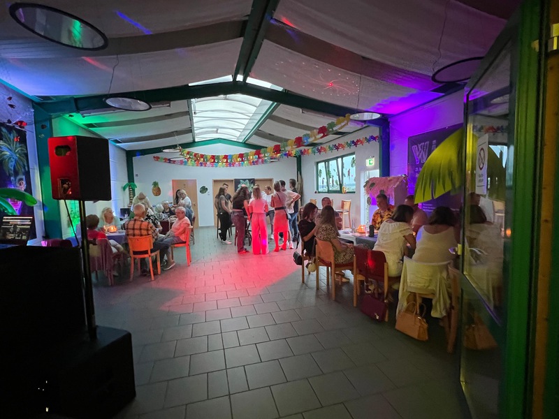 und Palmen geschmückt. Die karibische Atmosphäre sowie die sommerliche Musik sorgten für eine rundum gute und aufgelockerte Stimmung. Die Tanzfläche blieb den ganzen Abend nicht leer. Durch das gute