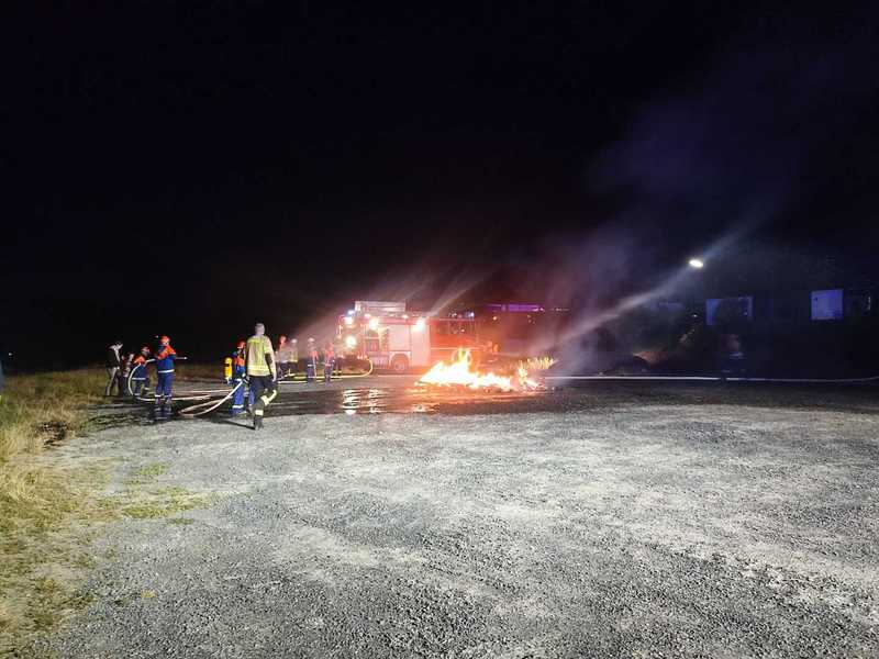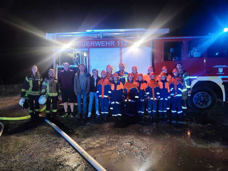 den Profis ausgezündet wurde, rückte die Jugend mit Blaulicht an und löschte umgehend den Brand. Der Nachwuchs hat die Übung sehr gut gemeistert, finden die vier anwesenden Ratsmitglieder Marco,