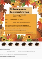 Bastelnachmittag für Kinder bis acht Jahre aus. Zehn Kinder konnten zwei Stunden lang, unter Aufsicht Erwachsener, Bilder malen, Flummis bauen oder Windlichter dekorieren. Zudem wurde ein kleines